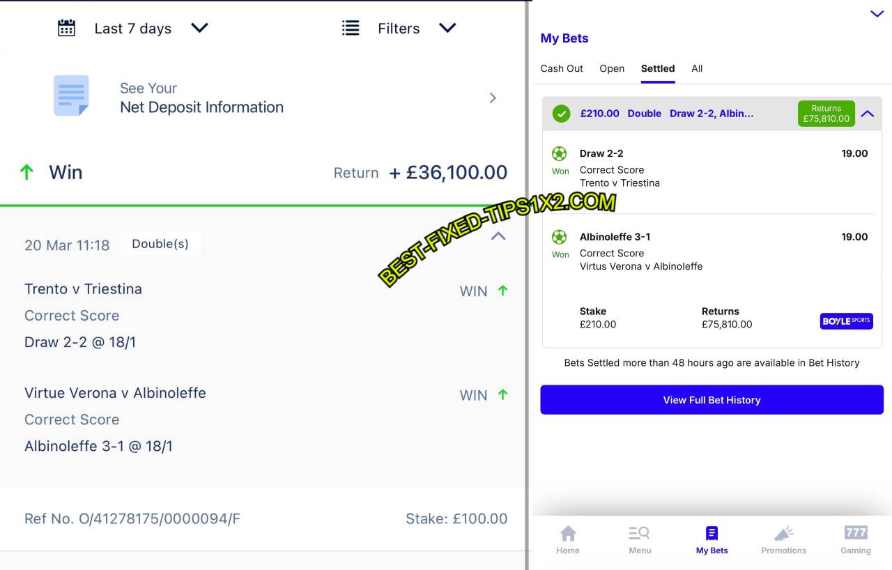 Last Proof From Correct Score Fixed Matches Of 20/03/2026